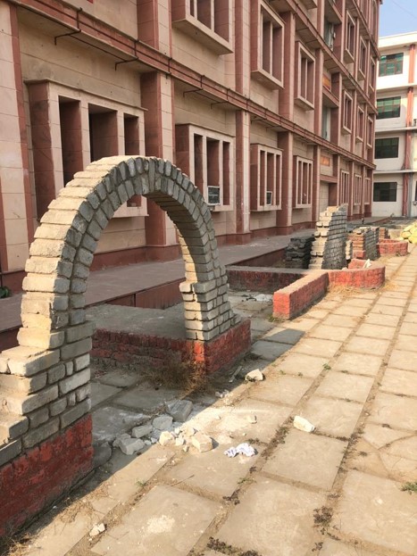 Construction yard is an open space available for the students to perform hands on exercises of using various building materials like clay, bricks, stone etc. to constructs building elements and gain practical experiences using different construction techniques.