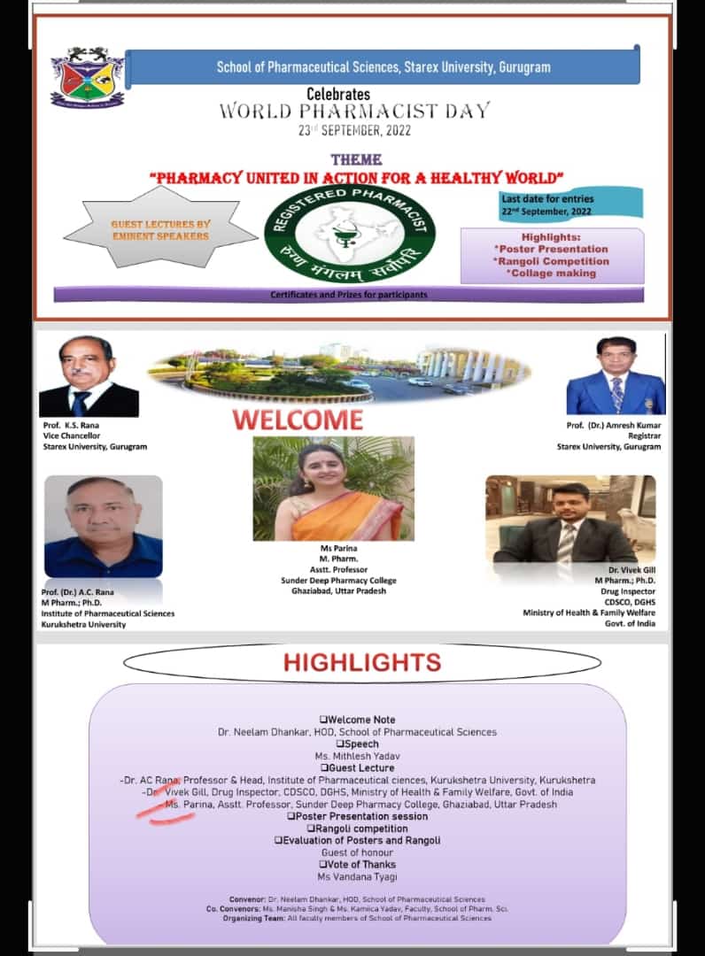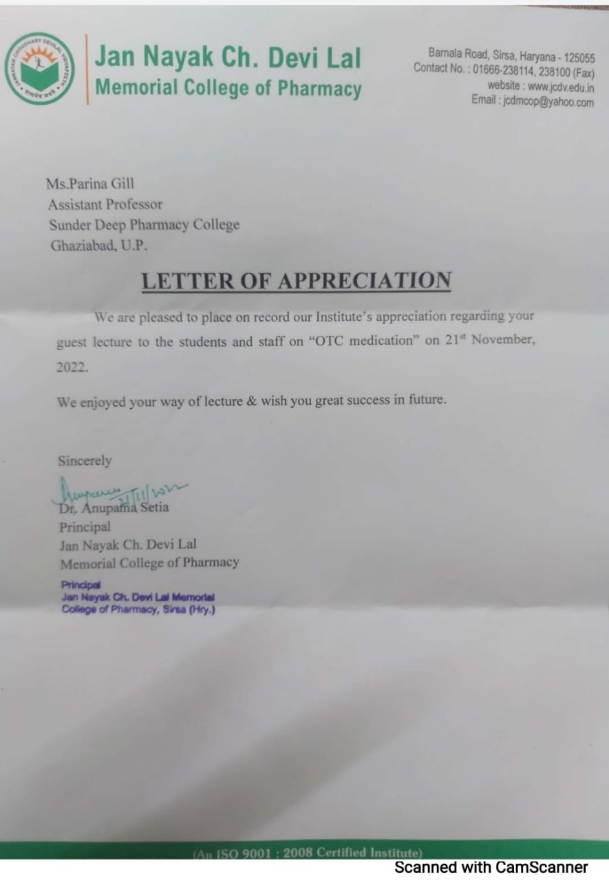 Ms Parina, Assistant Professor, Sunder Deep Pharmacy College, Ghaziabad, delivered a Guest lecture on “OTC Medication”